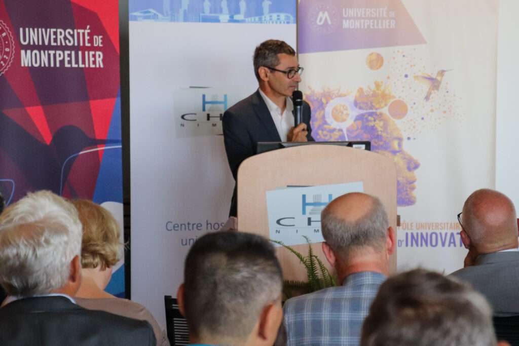 Le 2 septembre, la communauté hospitalo-universitaire de Nîmes s’est réunie lors d’un afterwork en présence de Philippe Augé (Université de Montpellier), Frédéric Rimattei (CHU de Nîmes) et Michel Prudhomme (commission médicale d’établissement du CHU de Nîmes). L’événement a mis en avant la dynamique commune en recherche et innovation, avec la participation de Véronique Dominguez-Guillaumel, rectrice déléguée pour l’enseignement supérieur et la recherche.